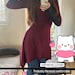 The pixie winter tunic dress with cowl hood lined with black fabric on the cuffs and hood.