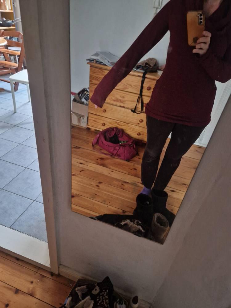 Etant très corpulente, je m'en sers comme pull. J'aime beaucoup la matière, je me sers de la capuche soit comme col roulé, soit comme capuche.